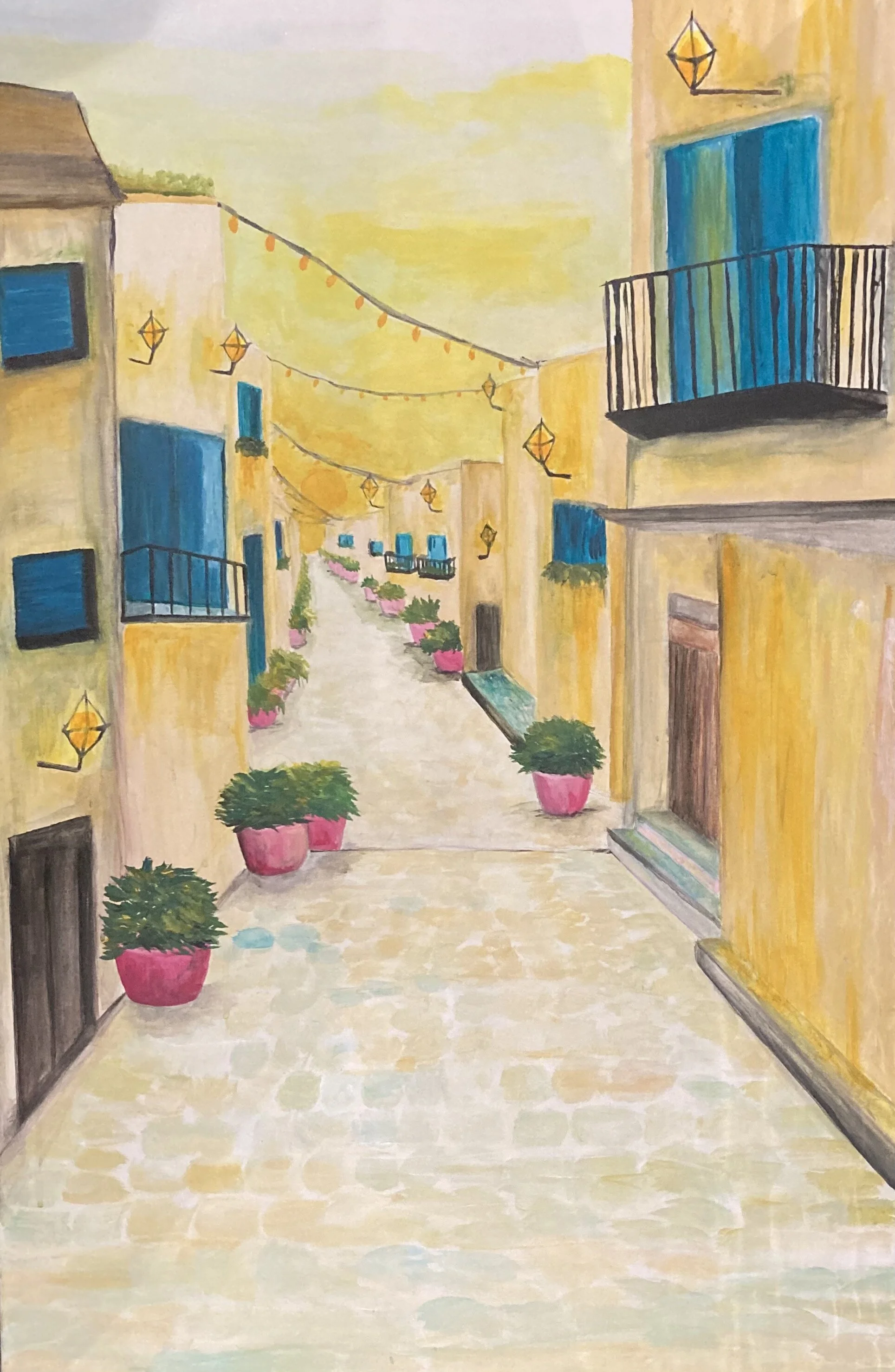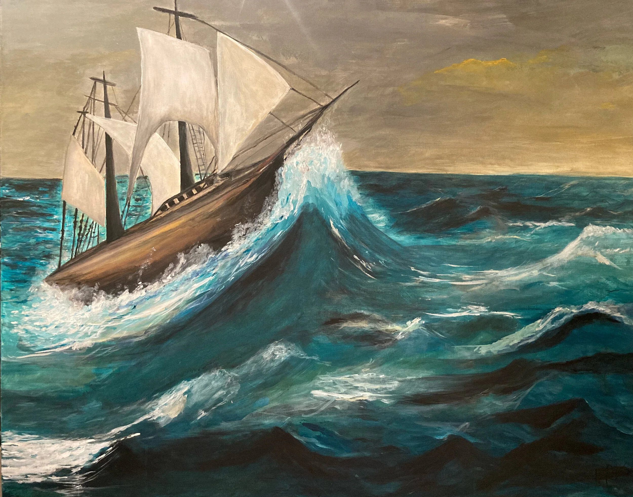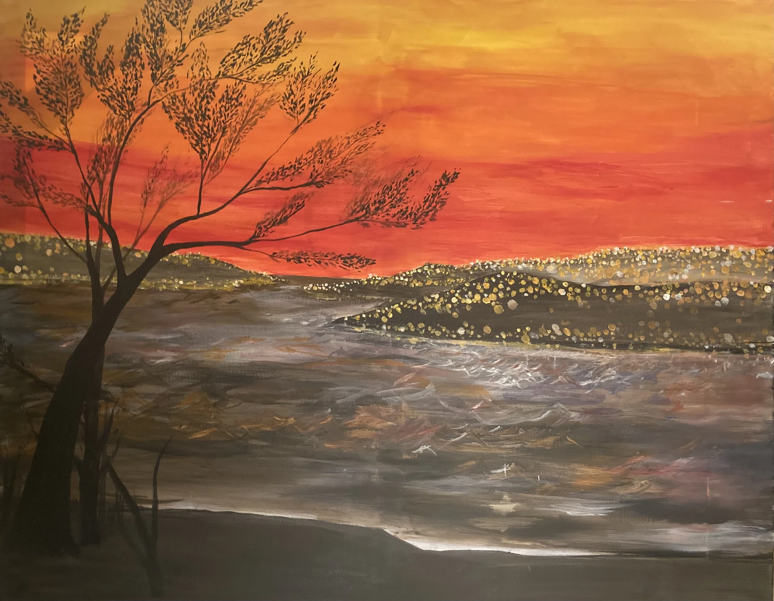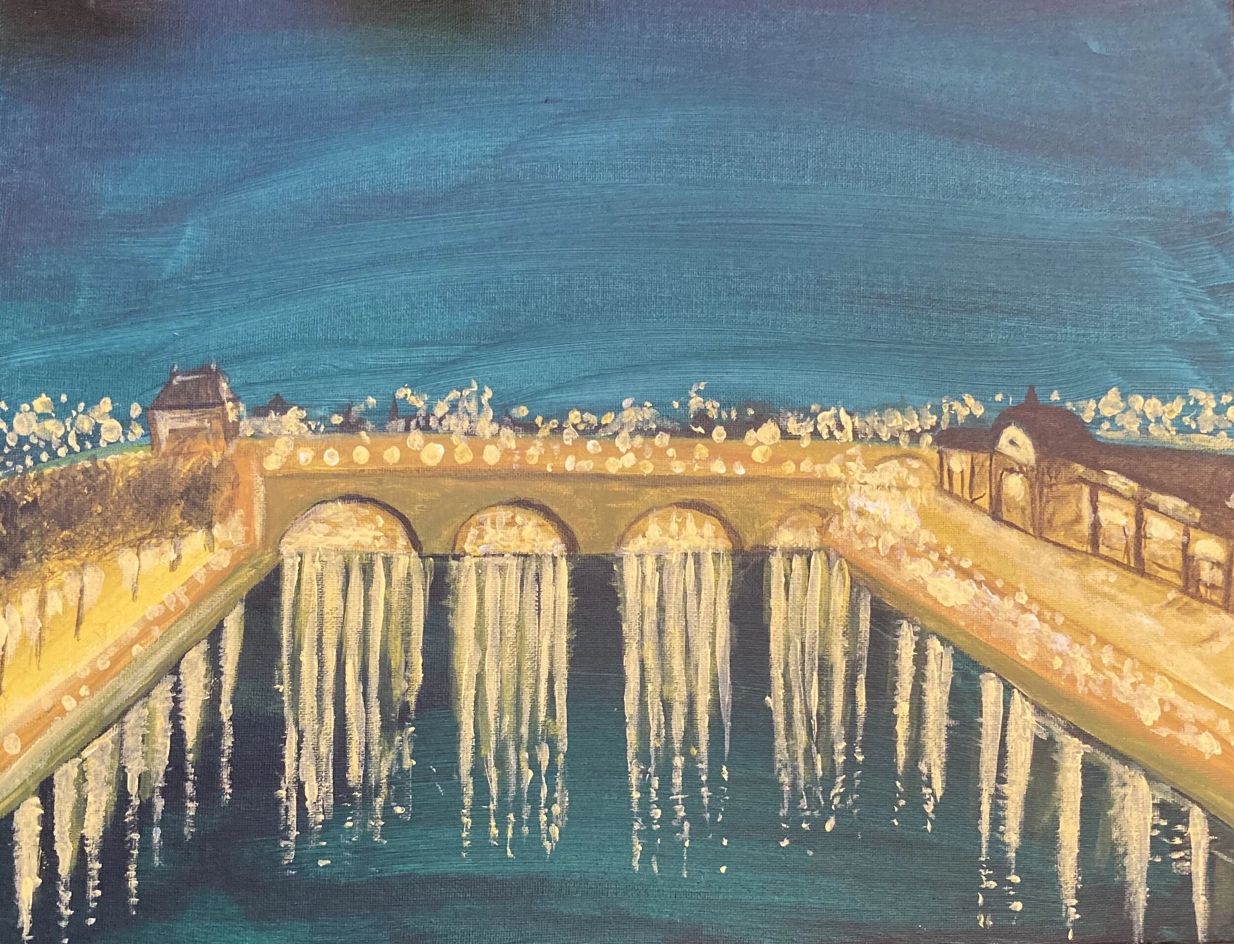 Acrylic original painting. Deep river blues with the reflecting city lights, bringing sophistication and light to any space.